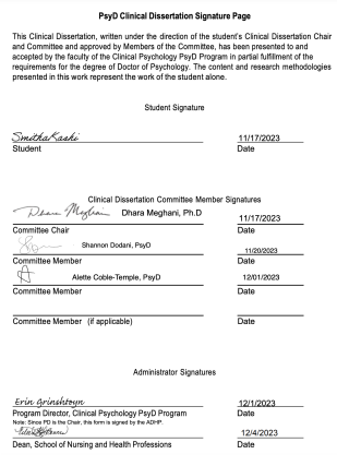Lastly, I want to thank my dissertation advisor Dr. Meghani. I am so appreciative for all the time you have spent in guiding me and being so supportive and encouraging of my process. Your mentorship during this process has been invaluable and that is something I will forever be grateful for.